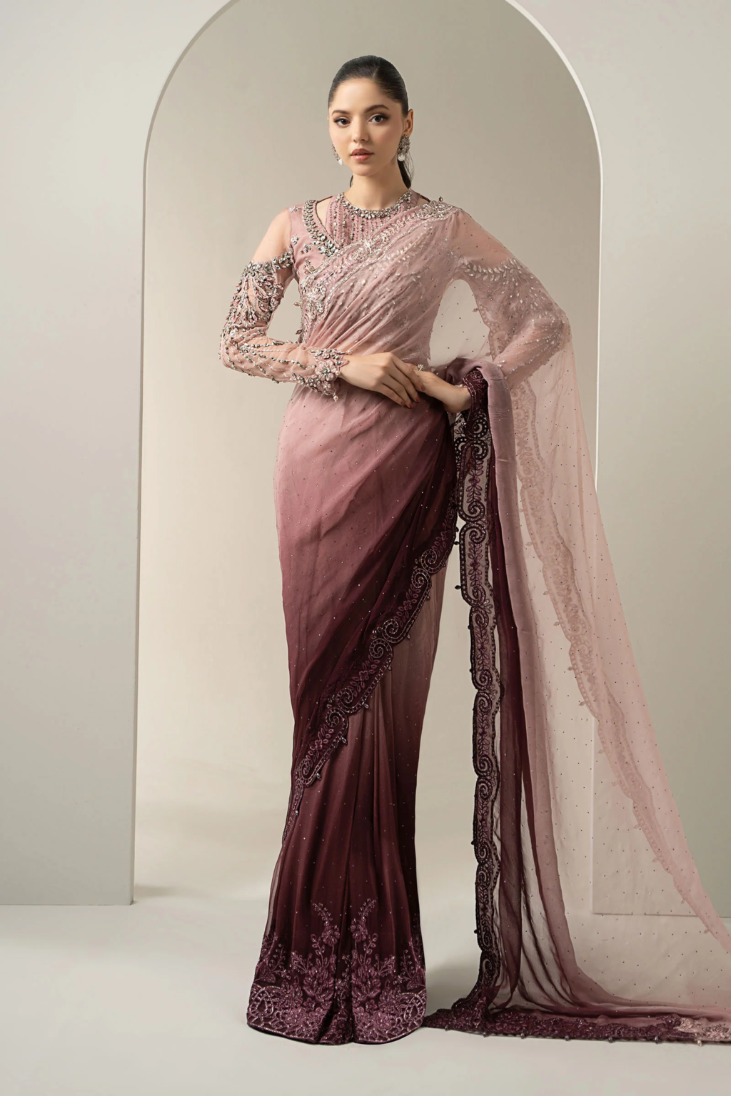 • Embroidered Chiffon Saree | BDS-3001