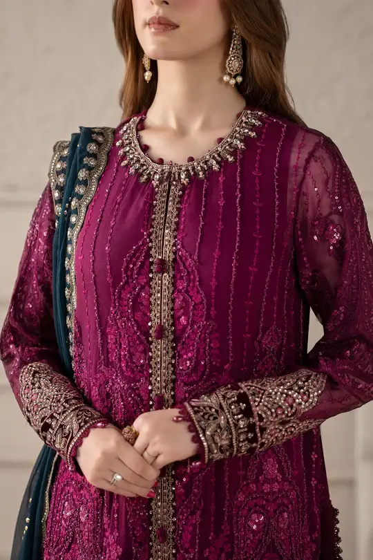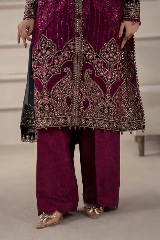 Embroidered Straight Sleeves With Lace & Velvet Embroidered Border