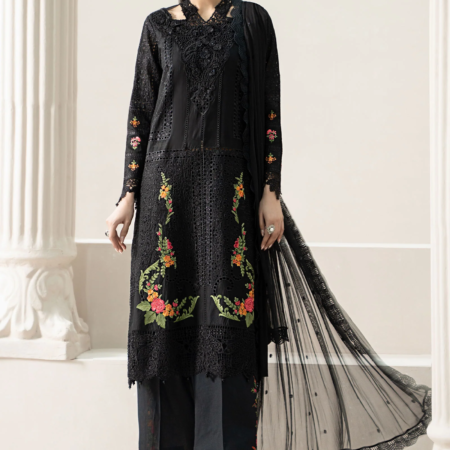 Embroidered Center Panel With 3D Flowers, Studs & Pearls Detailing