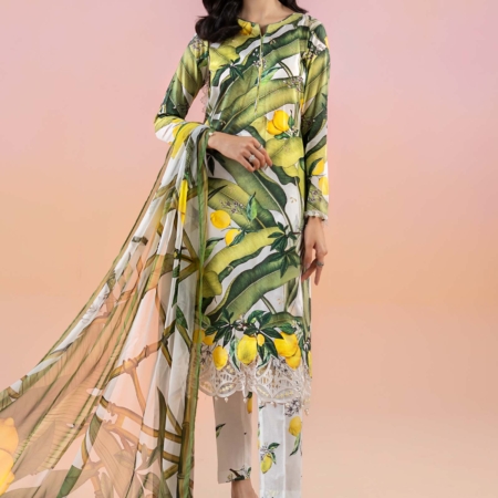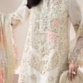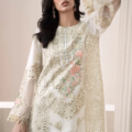 Spray Embroidered Sleeves With Embroidered Organza Border & Lace Detailing