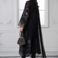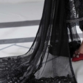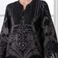Embroidered Organza Neckline With Pearls & Loop Buttons Detailing