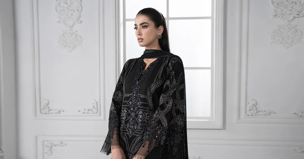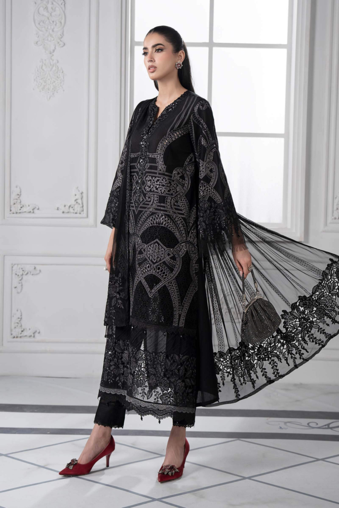 Dyed Embroidered Front With Jaal