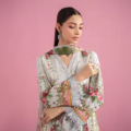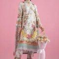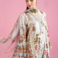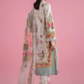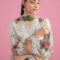 Printed Sleeves With Organza 3D Flowers Embroidered Border