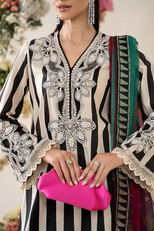 Organza Embroidered Overlap Neckline