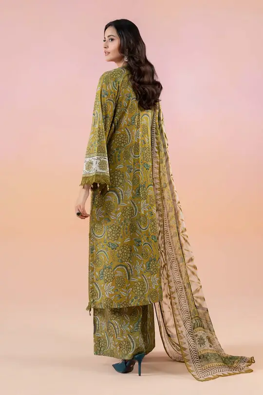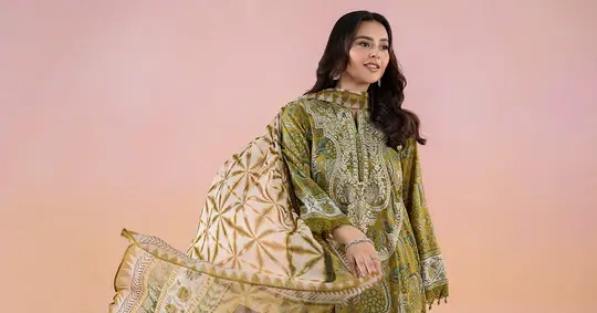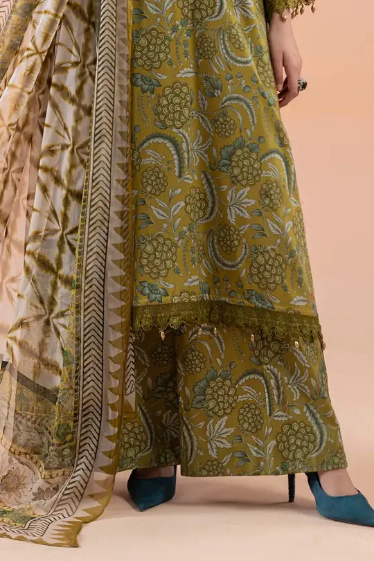 Printed Sleeves With Lace & Pearl Drop Detailing On Border