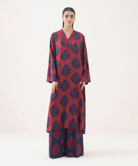 Upgrade your style in our printed red viscose linen drop shoulder shirt featuring a shawl style neckline.