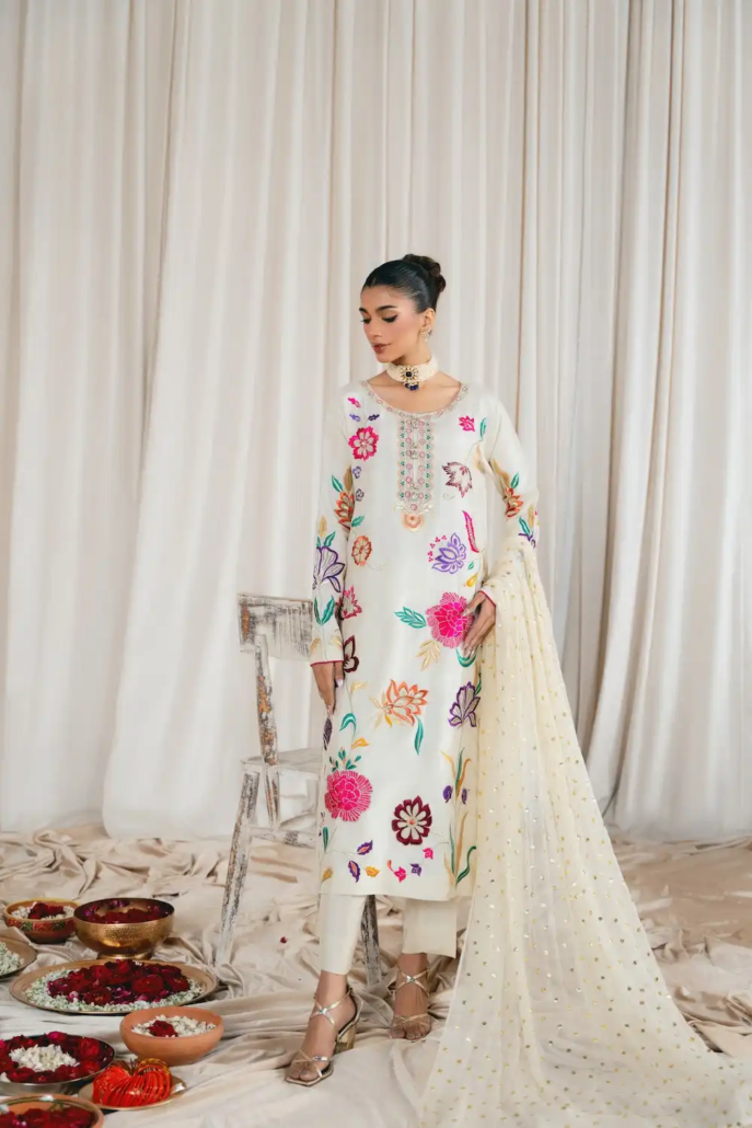 Crafted in a sweeping silhouette and peppered with nature-inspired floral embroidery, Alisha feels luxurious on the skin and is the perfect summertime glamorous outfit.