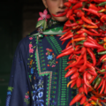 Midnight blue just got a playful upgrade! Amani is all about free-spirited charm, featuring whimsical oversized florals and intricate embroidery that add an artsy, vibrant touch. The breezy chiffon dupatta flows effortlessly, while contrasting ivory trousers with an embroidered patch and a statement back motif complete the look with a hint of quirk. Fresh, fierce, and fabulously boho—this is for the Zaha girl who loves to mix fun with flair!
