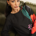 - This top, made in soft crepe fabric, in floral print, features crew neck with slit at the back, full length sleeves, slit with snap button closure along the sleeves and side pocekts with side slits.