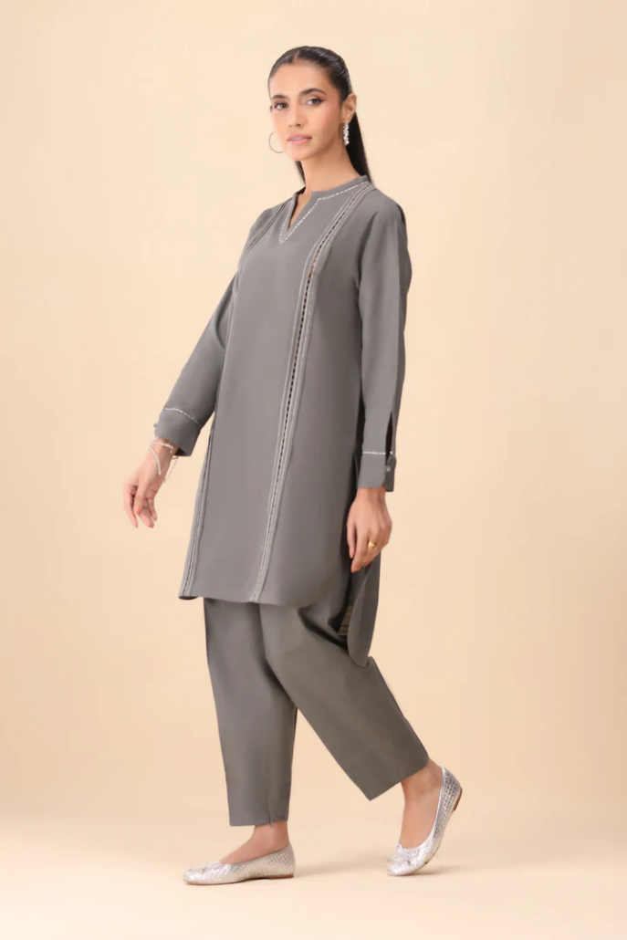 Chill out in style with Ashlyn, the ultimate charcoal grey matching coords set that mixes comfort with cool. The shirt features bold thread stitch details, giving it a relaxed yet edgy vibe, while the cuffed sleeves add a modern twist. Paired with sleek tonal pants, this set is the perfect combo of laid-back luxury and street-smart flair.