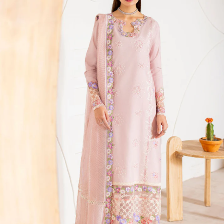 - Embroidered, sequinned front & back daman border (organza)