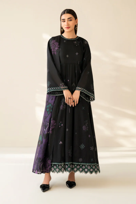 Frock fabric: digital printed lawn sleeves with embroidered hemming border