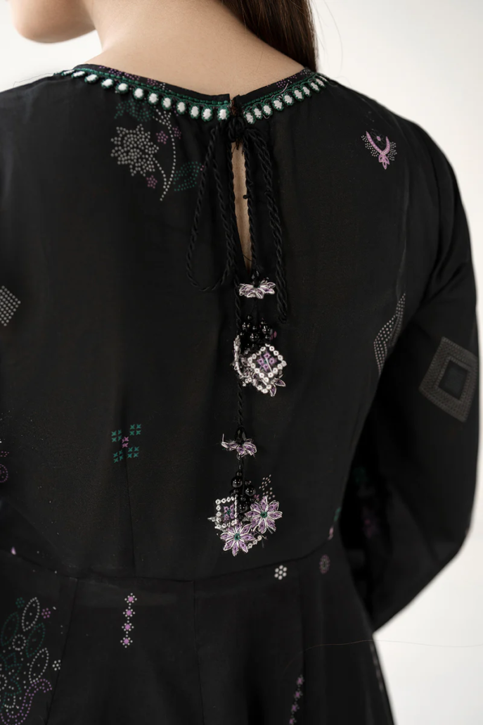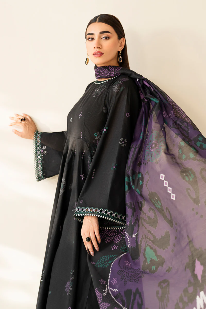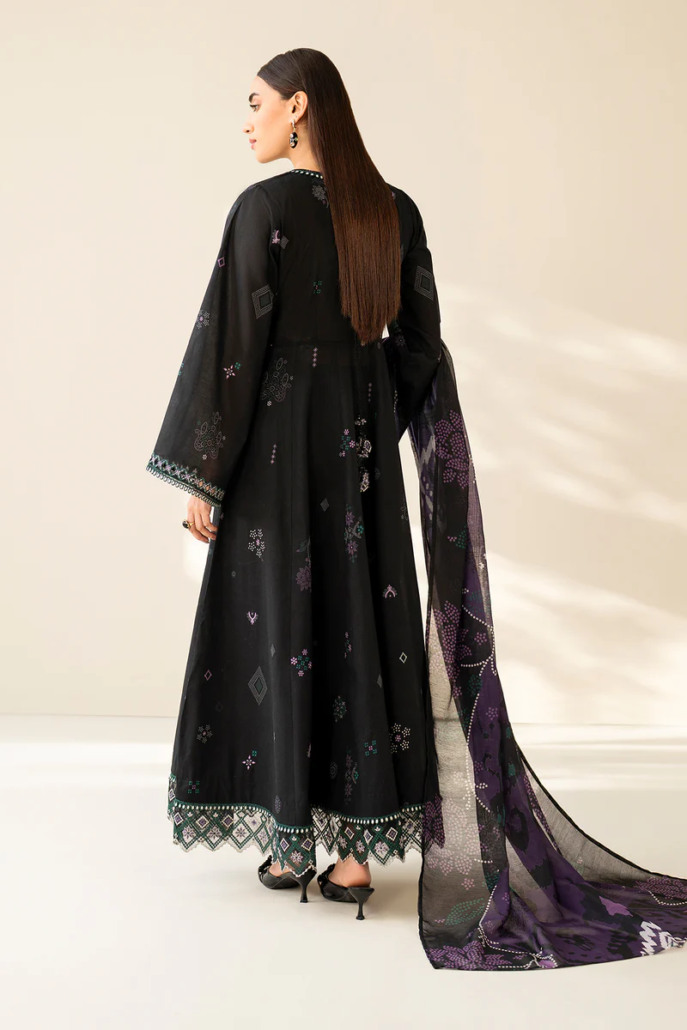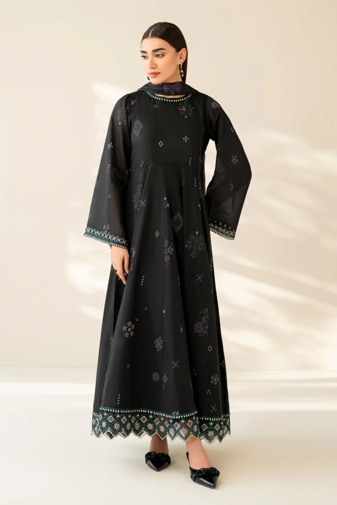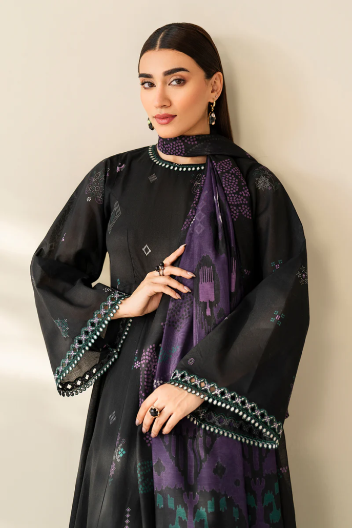 Frock fabric: digital printed lawn sleeves with embroidered hemming border