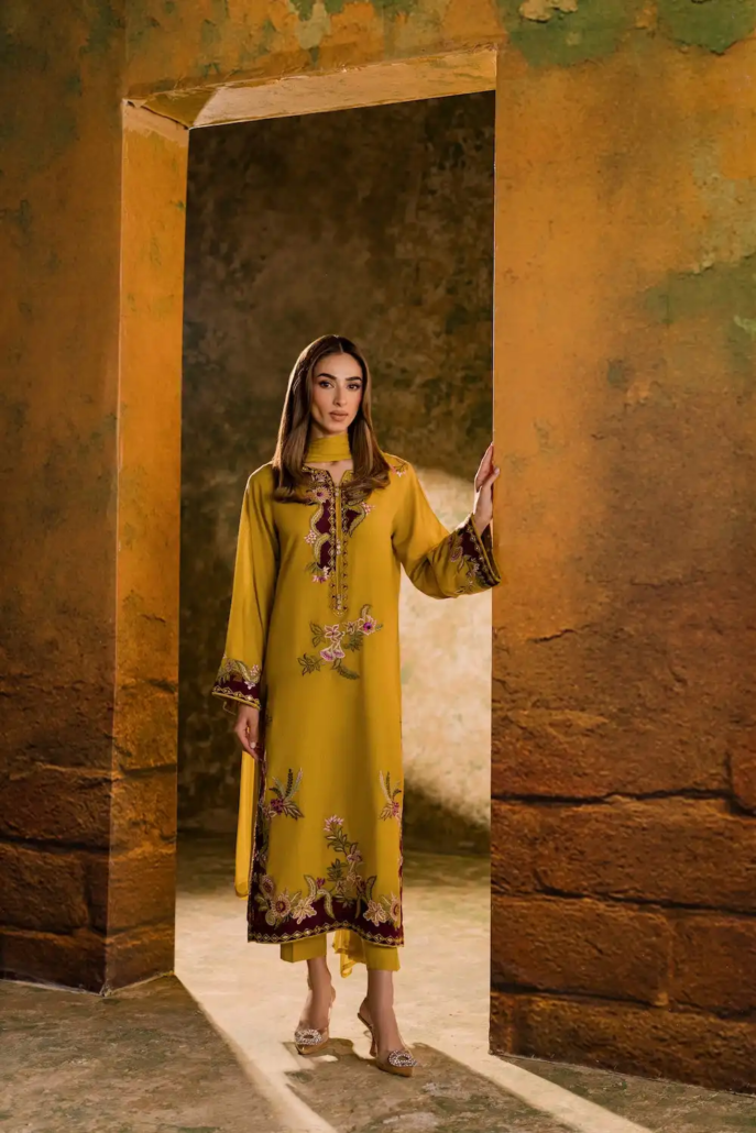 Elevate your wardrobe with this striking lime green Karandi ensemble, a perfect blend of tradition and modern flair. The breathable, textured Karandi fabric offers a graceful fall and natural elegance, ideal for both daytime festivities and evening gatherings.