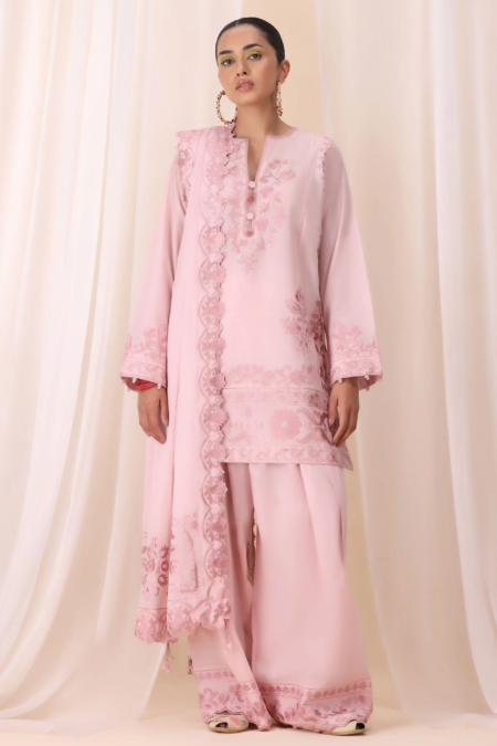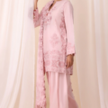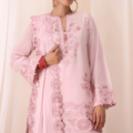 Step into timeless elegance with Elysia — a masterfully crafted ensemble that celebrates intricate artistry and contemporary flair. The fully embroidered shirt is a canvas of delicate craftsmanship, showcasing exquisite threadwork that radiates sophistication from every angle. Paired with a trendy shalwar designed for both comfort and style, the outfit is elevated by an embroidered patti that adds a refined touch of detail.