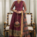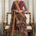This 3-piece magenta coloured ensemble entails a shirt with proficiently crafted handwork on its neckline. Over the canvas of digitally printed chiffon, embroidered gilded pigmentation appears, sparking the bright canvas with its lucent shine. The modern voguish transcendence is quite evident in its artistically crafted sleeves embroidery. While the embroidered digitally printed chiffon dupatta adds the traditional element to its vista. It comes with a dyed silk trouser. Stitched or unstitched? It’s up to you. If you go for stitched, decide whether you want a frock or a lehenga.