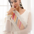 Make a statement with this elegant ready-to-wear 3-piece outfit, designed for timeless style and comfort. The shirt features a beautifully embroidered border with soft chiffon sleeves, offering a perfect blend of structure and flow. It is paired with a lightweight embroidered net dupatta and sleek grip fabric trouser for a polished look. This ensemble includes the shirt, trouser and dupatta.
