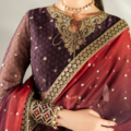 This exquisite embroidered chiffon ensemble features digitally printed and intricately embroidered chiffon on the front yoke, sleeves, front and back panels, and back yoke, creating a harmonious blend of texture and design. The matching chiffon dupatta is adorned with delicate embroidery and bordered edges, enhancing its elegance. Complemented by an embroidered raw silk bottom, this outfit offers a refined and sophisticated look, perfect for formal occasions where craftsmanship and style are paramount.