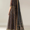 This embroidered chiffon ensemble features digitally printed and intricately embroidered chiffon panels on the front yoke, back, and sleeves, complemented by detailed embroidered borders. The dupatta showcases matching digital prints with an embroidered border, enhancing its elegance. The dyed raw silk bottom and bottom crush add a refined texture, creating a sophisticated and cohesive look ideal for formal occasions.