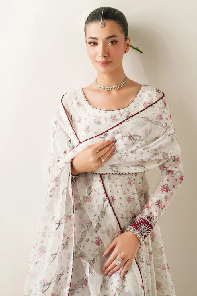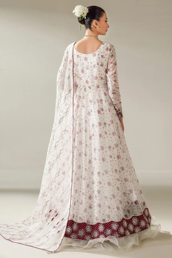 Experience elegance with the EMBROIDERED CHIFFON UC-3094, featuring digitally printed and embroidered chiffon on the front yoke, panels, and sleeves for a refined look. The design is enhanced by embroidered borders on the front, back, and sleeves, complemented by a digitally printed laser-embroidered chiffon dupatta. The dyed rawsilk bottom adds a luxurious finish, making this ensemble perfect for sophisticated occasions.