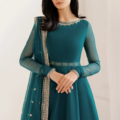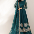 This exquisite embroidered chiffon ensemble combines delicate craftsmanship with luxurious fabrics. Featuring intricately embroidered chiffon on the front yoke, panels, sleeves, and borders, it offers a refined and elegant appearance. The dyed chiffon sleeves and back yoke add subtle contrast, while the embroidered chiffon dupatta with matching borders complements the look. The ensemble is completed with a dyed raw silk bottom, providing a graceful and sophisticated finish suitable for special occasions.