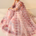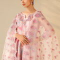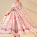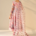 This elegant ensemble features an embroidered cotton frock with a delicately hand-embellished neckline, paired with an embroidered organza dupatta that adds a graceful touch. The comfortable grip trousers complete the set, which also includes matching accessories for a polished look. Perfect for special occasions, this outfit blends traditional craftsmanship with effortless style.