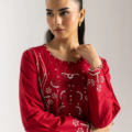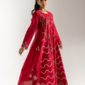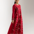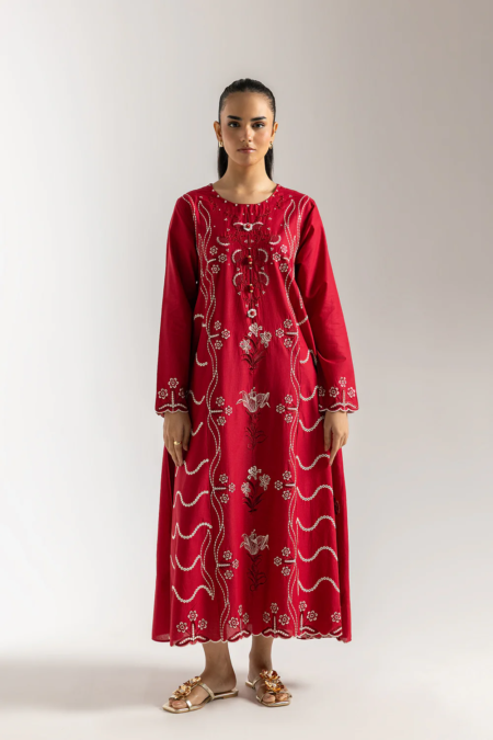 DRESS – FLARED FIT – ROUND NECK – FULL SLEEVES – SCALLOPED HEM – LONG LENGTH