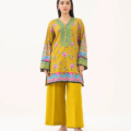 Revamp your wardrobe with our embroidered mustard light khaddar straight shirt featuring a v-neckline.