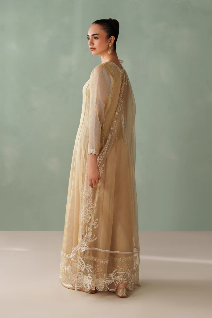 This elegant set features an embroidered Masoori fabric shirt, paired with comfortable grip fabric trousers. The embroidered net dupatta adds a delicate touch, completing the ensemble. Included are the shirt, trousers, dupatta, and matching accessories, offering a coordinated look perfect for special occasions.
