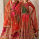 – Shirt: Embroidered zari net front, back, and side panels with ornate organza and silk borders, detailed neck patches, and refined hand embroidery.