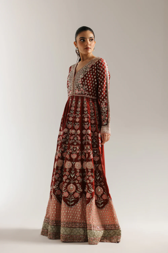 PISHWAS – FLARED FIT – V NECK – TAPERED SLEEVES – PLEATED HEM – ROUND HEM – LONG LENGTH