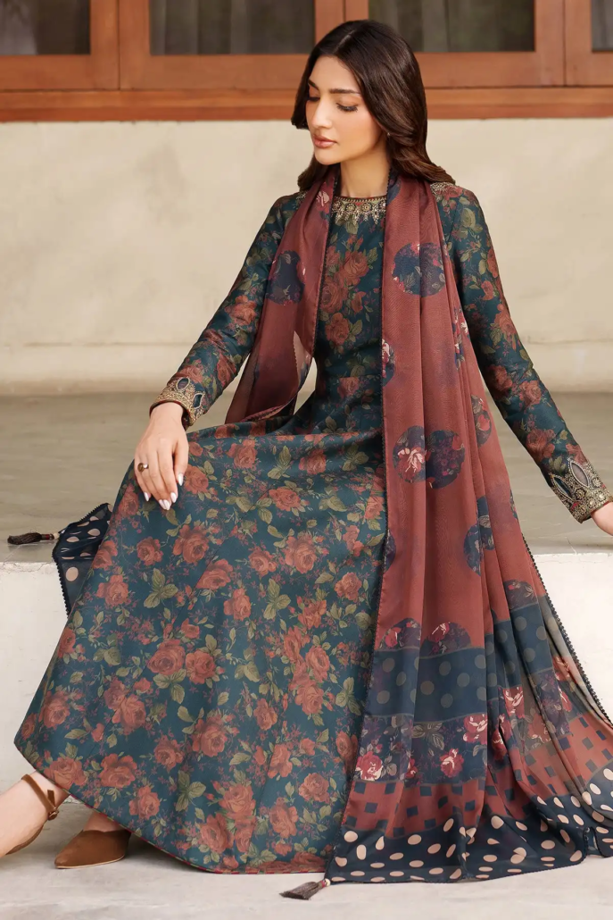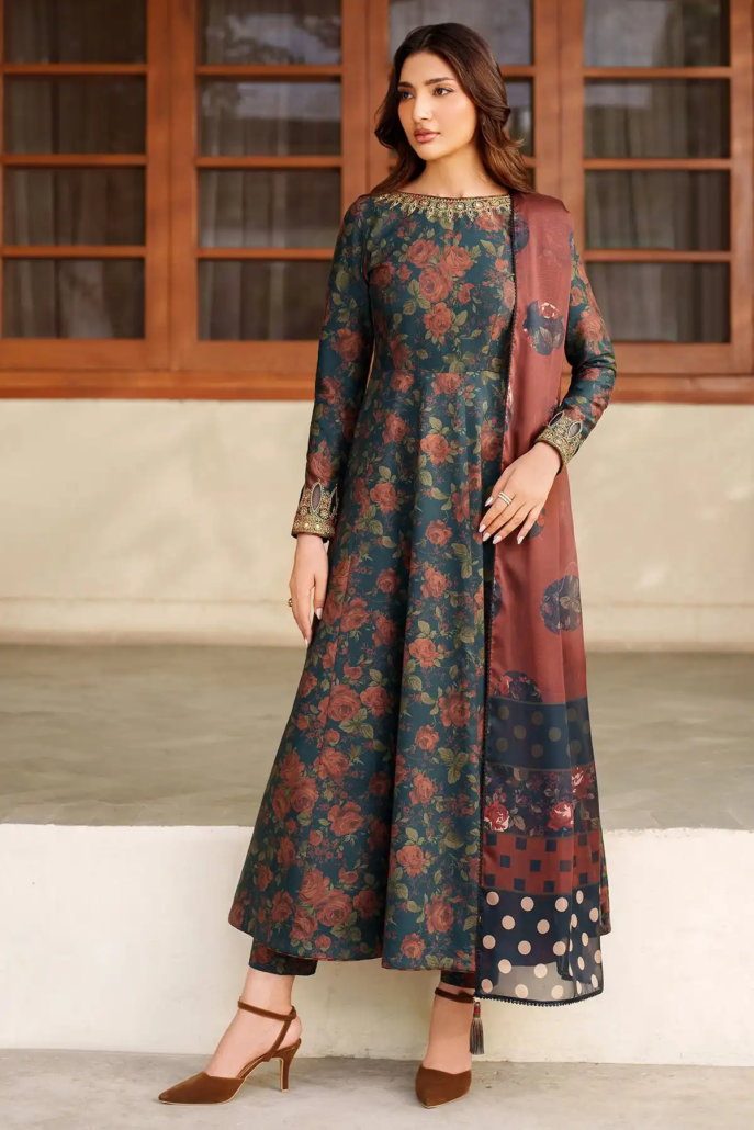 This ensemble features an embroidered premium viscose shirt paired with digitally printed premium viscose bottoms, balanced by a digitally printed tissue silk dupatta. Crafted with quality materials, it promises comfort and durability while showcasing intricate designs that enhance your wardrobe with a refined, sophisticated touch. Ideal for those seeking elegance paired with breathable, lightweight fabrics.