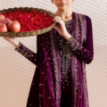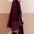 This luxurious formal outfit features an embroidered pure velvet front, back, sleeves, and bottom, delivering rich texture and elegance. The pure velvet back adds depth, while the embroidered borders on the sleeves enhance its refined appeal. The ensemble includes a georgette chiffon dupatta with delicately embroidered pallu borders and a digitally printed embroidered organza dupatta border, offering a sophisticated blend of traditional craftsmanship and contemporary design. Ideal for formal occasions, this piece balances intricate embroidery with premium fabrics for a distinguished, polished look.