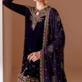 This Embroidered Velvet Formal CVF D-08 features luxe pure velvet detailed with intricate embroidery on the front, sleeves, and bottom, creating an elegant and refined look. The design extends to embroidered borders on the front, back, and sleeves for a cohesive finish. Complementing this is an embroidered georgette chiffon dupatta with delicate borders and a velvet embroidered pallu, enhancing its formal appeal. The pure velvet back adds both comfort and sophistication to this finely crafted ensemble, perfect for distinguished occasions.