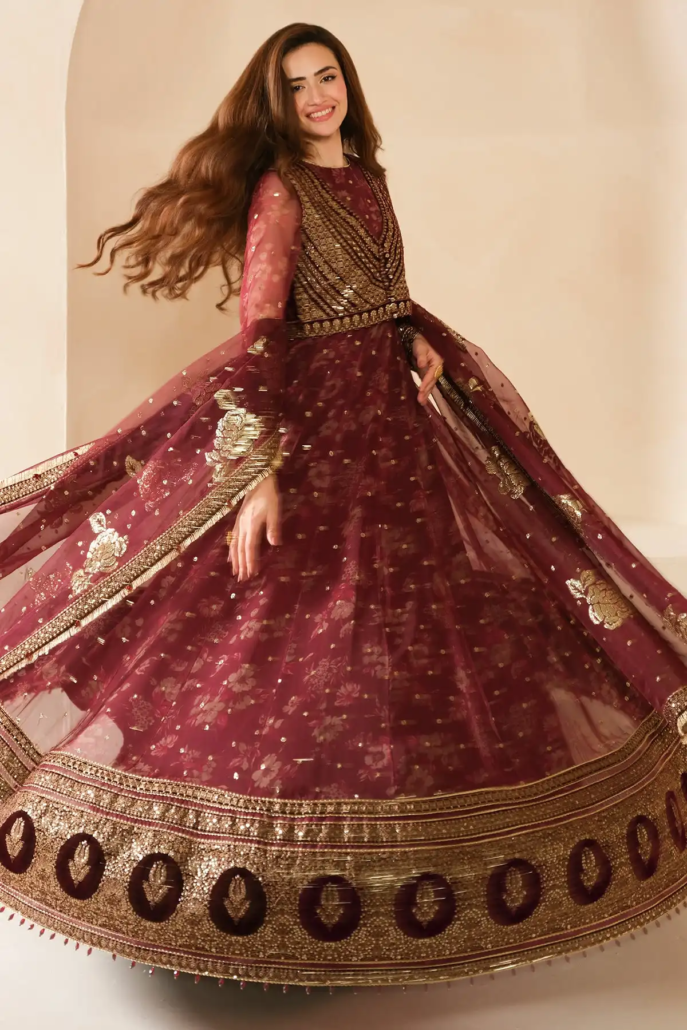 Digital Printed Embroidered Chiffon Front, Back Yoke Sleeves
