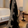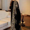 This velvet shawl features delicate tilla embroidery, accentuated by sparkling sequins that shimmer along the borders. Expertly handworked, the shawl is finished with a beautifully detailed border, which adds an extra layer of luxury. The rich texture and intricate detailing make it a superb choice for enhancing both formal and semi-formal outfits.