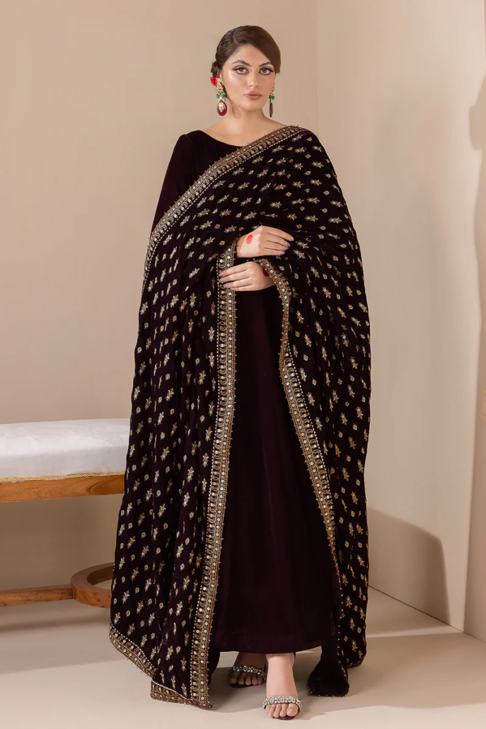 Embroidered Velvet Shawl (2.75 YARDS)