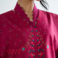 Inspired by Mughal artistry with a modern twist, this carmine red co-ord set features a vibrant tropical print, enriched with hints of lush green and deep red. The fusion of ethnic motifs and contemporary design makes it a bold yet refined choice for the season.