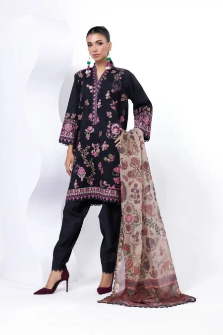 - Top Fabric:Â Dyed Embroidered Dull Raw Silk | 3.25m
