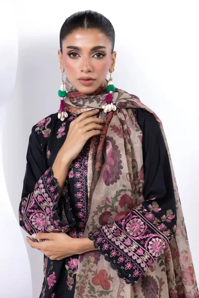 - Top Fabric:Â Dyed Embroidered Dull Raw Silk | 3.25m