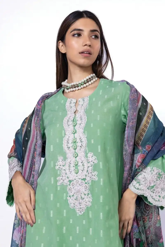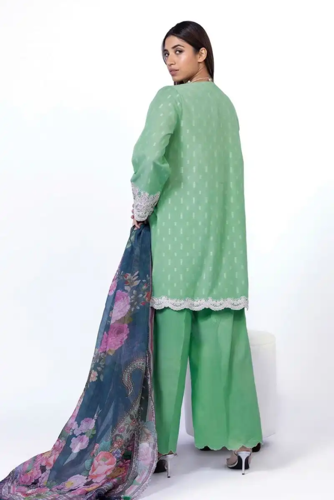 - Top Fabric:Â Dyed Embroidered Jacquard | 3.25m
