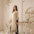 For the woman who knows her mind and is her own guiding light, a majestic kurta set in rich hues of beige and black. Featuring floral embroidered motifs, elevated with organza insertions in the sleeves and daaman, the Ghazal set is handcrafted for pure elegance. Each karigar spends a full-day in creating this intricate work of art and turn it into a masterpiece.
