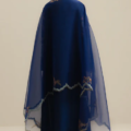 A cobalt blue outfit crafted from medium raw silk, blending classic elegance with intricate craftsmanship for a striking and refined look.