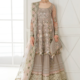 Completed with an embroidered organza dupatta, featuring delicate threadwork that adds lightness and grace. The airy fabric enhances the overall refinement of the ensemble.