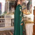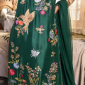 This Emerald Green two-piece ensemble on raw silk features majestic floral embroidery on the front. The sleeve detail makes it impeccable, this outfit is perfect for formal soirees.