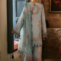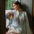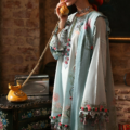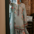 Bathed in the soft glow of early dawn, Khushbu evokes the gentle nostalgia of old Lahore’s blooming gardens. The celestial ice blue canvas cradles delicate cherry blossom and soft pink florals that cascade like petals drifting on a quiet breeze. An embroidered Schiffli neckline, sleeves patti, and hemline border recall the intricate handiwork of bygone artisans, weaving stories of timeless elegance and heritage.