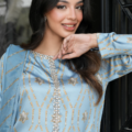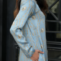 - Crafted from soft charmeuse silk with gota print in a modern take, this dress features front embellishment and full-length sleeves for an elegant finish. It is paired with “Kilaar Dupatta” to complete the look.