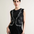 - Crafted from viscose, this sleeveless piece features delicate palm tree line-art embroidery on the front. Designed with a short vest-style cut, it includes a V-neckline and a front tie-up closure. Pair it with ‘Konar skirt’ to complete the look. Fully lined for a neat, comfortable finish. Pair it with ‘Konar Skirt’ to complete the look.