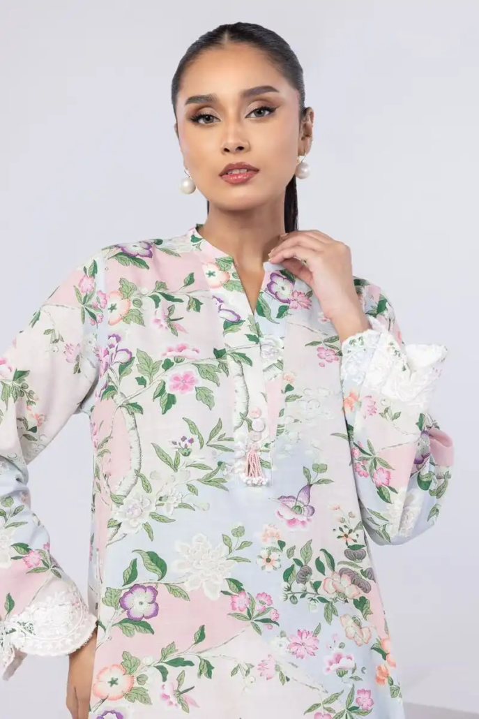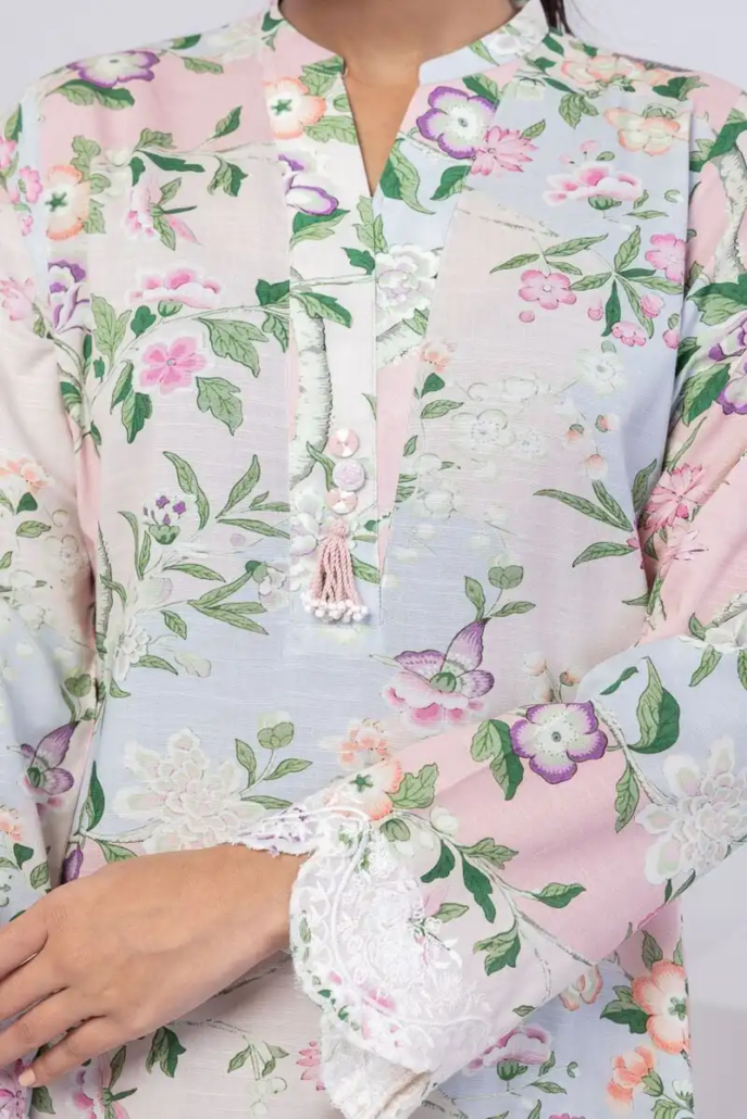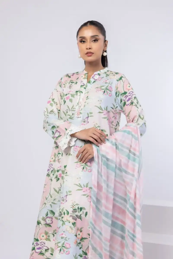 BLUE LAWN PRINTED 3PC STITCHED