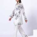 - Description:Â A short embroidered kurta featuring full sleeves with pintuck detailing and lace inserts along with a V-neckline.
